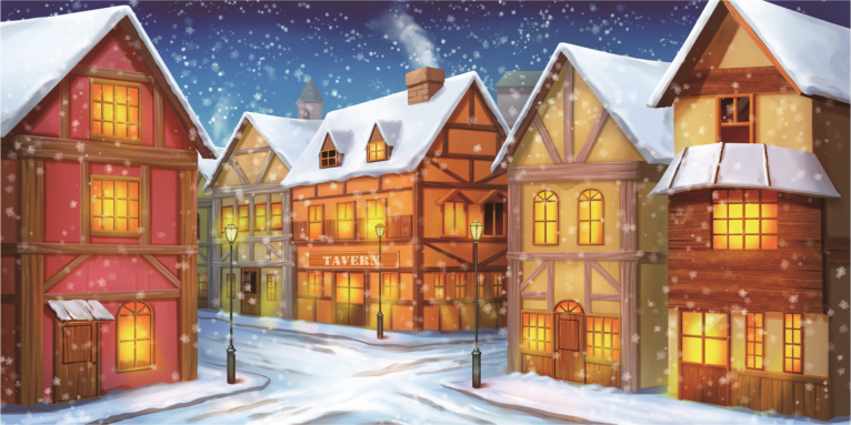 TCCC-s008 – 33ft x 17ft (10m x 5.2m) Winter Town Night Backdrop Leave a Comment / By backdrophire / 10 December 2025